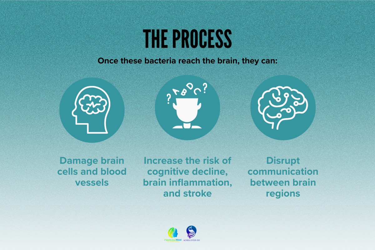 Your mouth contains millions of bacteria. Some are helpful, but others can trigger inflammation when they grow out of balance. When harmful bacteria flourish due to gum disease, poor hygiene, or unresolved dental issues, they can enter the bloodstream and travel to the brain.